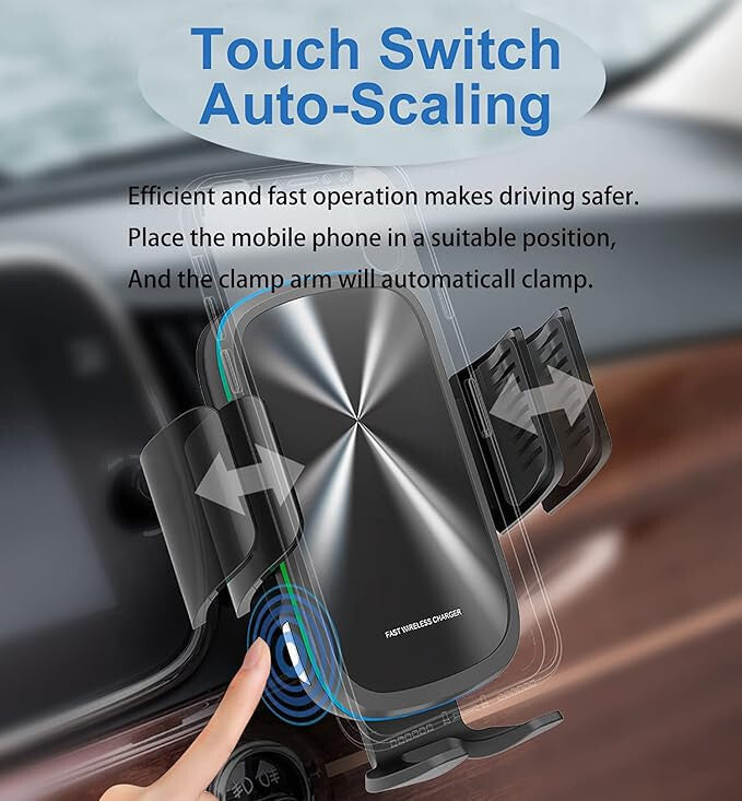 - Complet automat: Comutator tactil și ajustare automată a dimensiunii. Funcționare eficientă și rapidă care face condusul mai sigur. Pur și simplu plasează telefonul în suport, clemele se închid automat și fixează ferm telefonul. O atingere ușoară pe butonul de eliberare rapidă de pe oricare parte, iar brațele suportului se deschid automat.