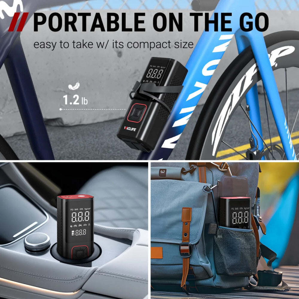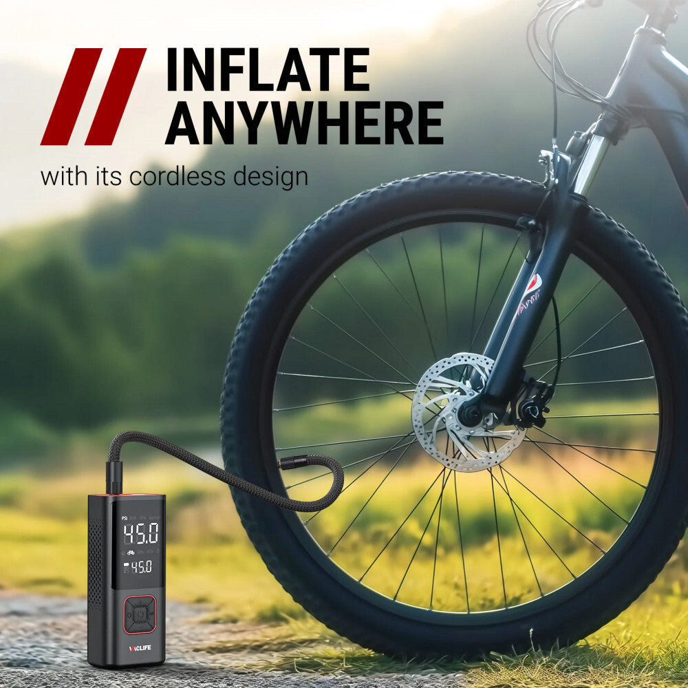 - PORTABIL ȘI FĂRĂ FIR: Pompa de aer portabilă VacLife are un design compact, fără fir, care vă permite să o luați cu ușurință oriunde mergeți. Puteți alege dintre patru unități de măsură a presiunii (PSI, BAR, KPA și KG/CM²). Livrată cu mai multe accesorii, pompa de aer fără fir VacLife este indispensabilă pentru șoferi, bicicliști și aventurieri.