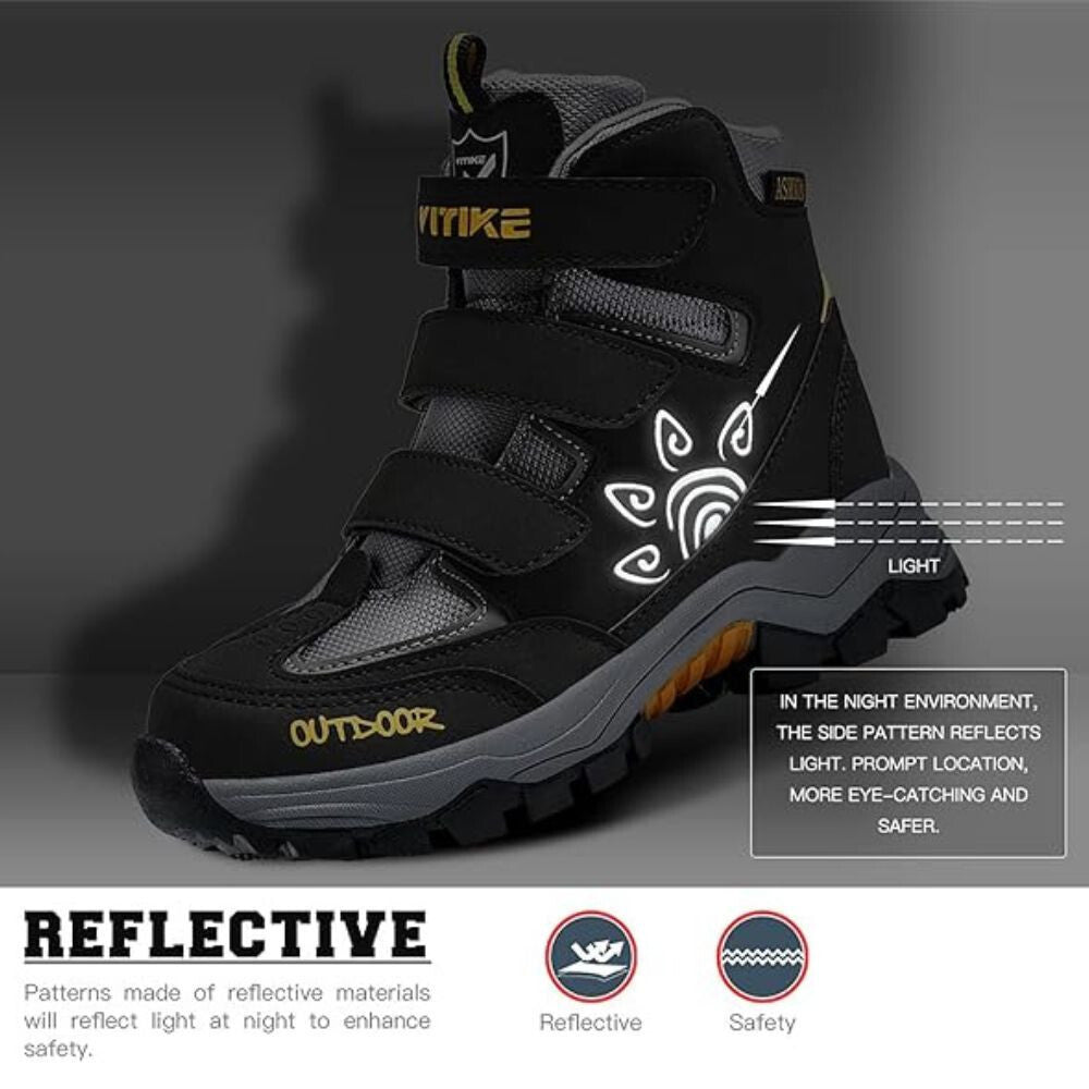 - Cizmele de iarnă ASHION în mărimea 40 sunt o alegere excelentă pentru lunile reci, când căldura, siguranța și durabilitatea sunt importante. Această încălțăminte galben-negru este realizată dintr-o combinație de piele ecologică de înaltă calitate și material textil tip plasă, oferind atât rezistență, cât și confort la purtare. Designul rezistent la apă, vânt și zăpadă asigură că picioarele tale rămân mereu uscate și protejate.