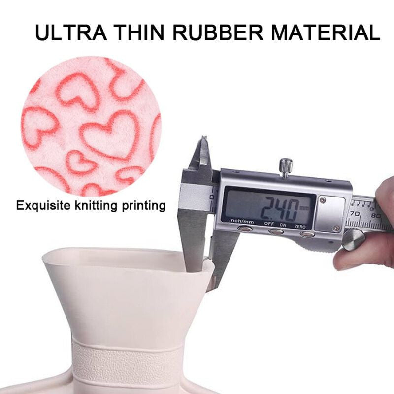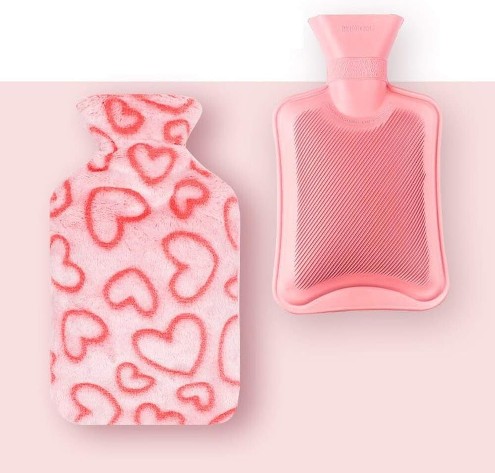 - Această sticlă cu apă caldă, cu dimensiunile de 15 × 26 cm, poate fi folosită cu ușurință pe diferite zone ale corpului: ajută la ameliorarea durerilor menstruale, crampelor abdominale, durerilor de spate sau pur și simplu oferă căldură în timpul odihnei. Husa moale, cu model de inimioare roz, nu doar că oferă un aspect estetic și vesel, ci și o senzație plăcută la atingere, permițând contactul direct cu pielea.