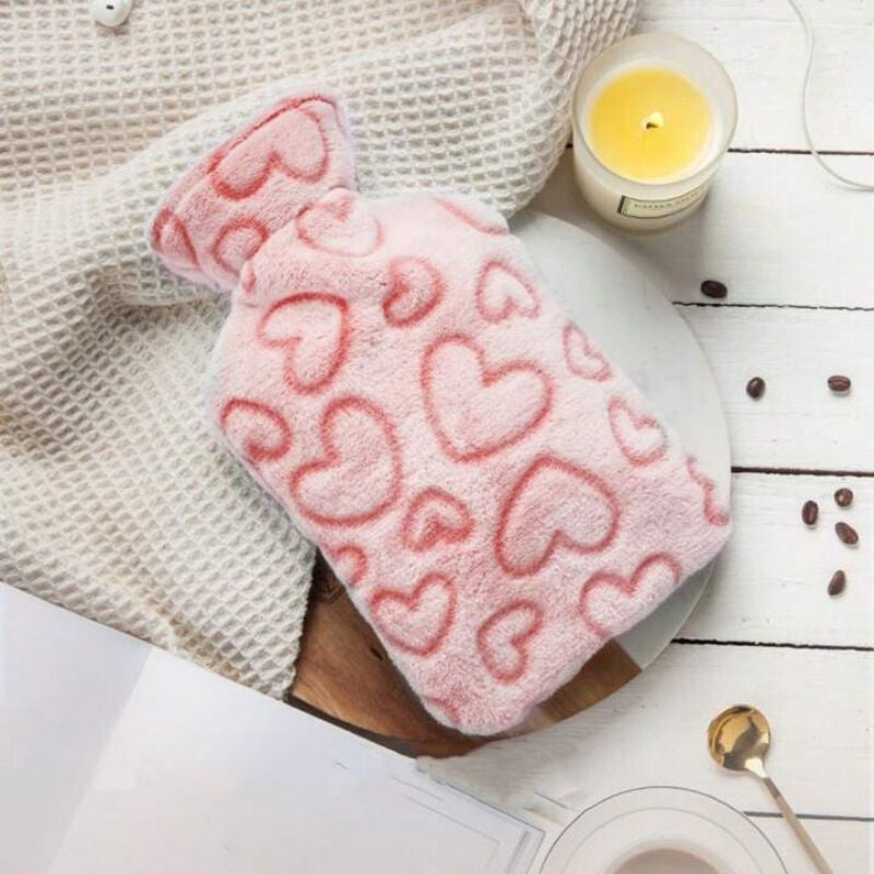 - Sticla cu apă caldă cu model de inimioare roz este un accesoriu stilat și practic, ideal pentru zilele reci, pentru ameliorarea durerilor sau pur și simplu pentru relaxare. Fabricată 100% din cauciuc natural, sticla păstrează căldura mai mult timp decât variantele tradiționale din silicon, oferind astfel o soluție fiabilă și eficientă.