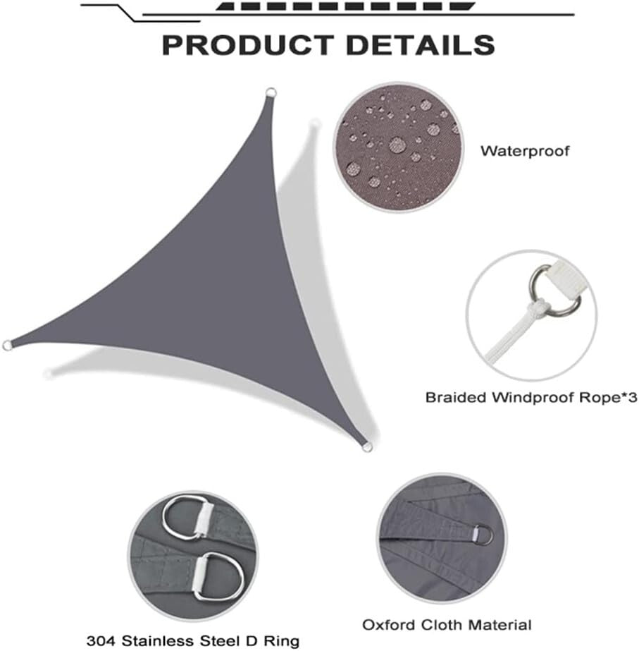 Această velă de soare triunghiulară (dimensiuni: 6x6x6 metri) este alegerea perfectă pentru grădină, terasă, balcon sau evenimente în aer liber. Culoarea sa gri stilată o face un accesoriu elegant în orice mediu.