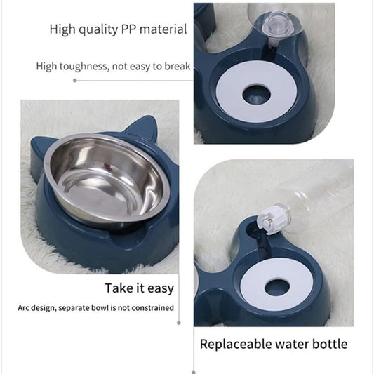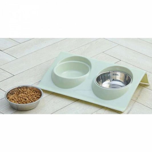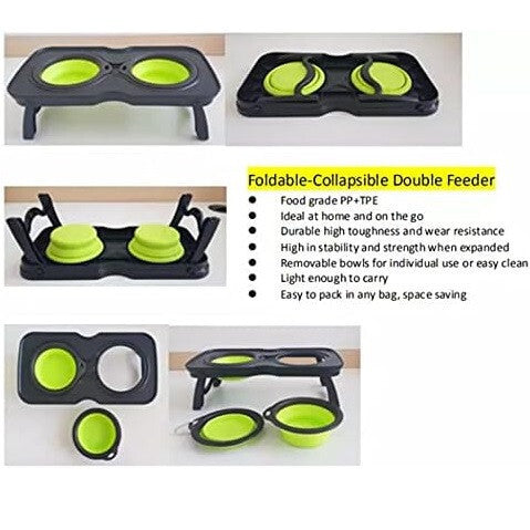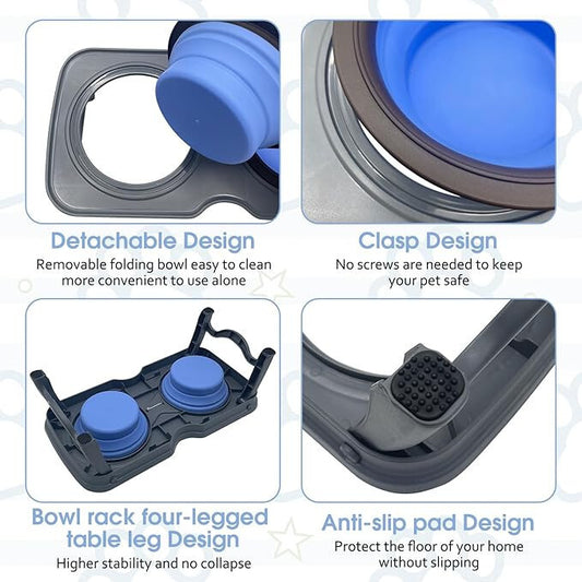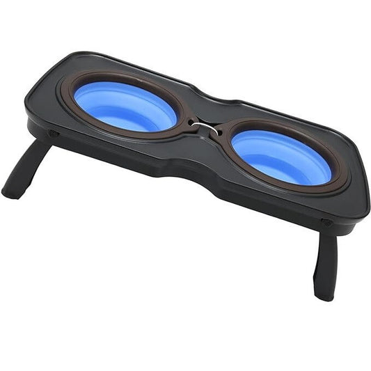 Bol Dublu Pliabil Portabil pentru Hrănirea Animalelor de Companie în Călătorii S (Negru și Albastru)