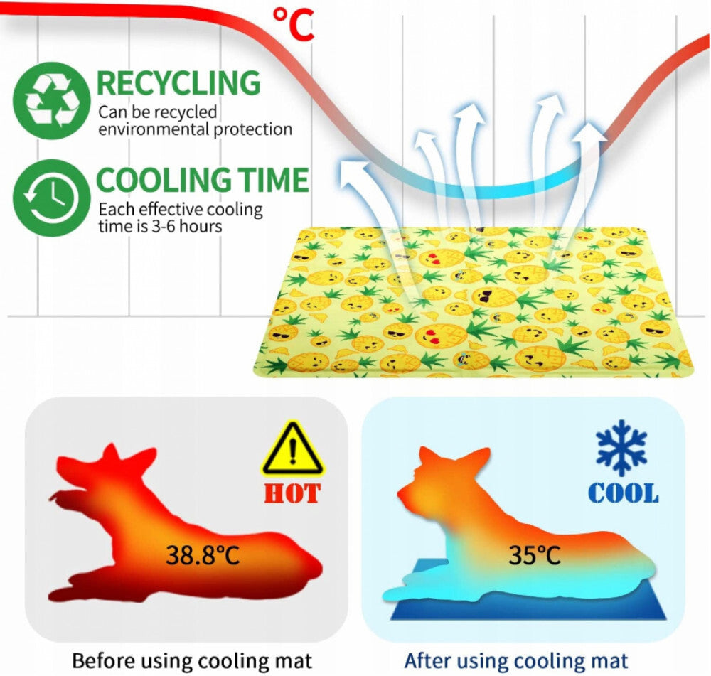 - Saltea răcoritoare cu model de ananas Furrybaby pentru animale mici - XS, pat cu efect de răcire