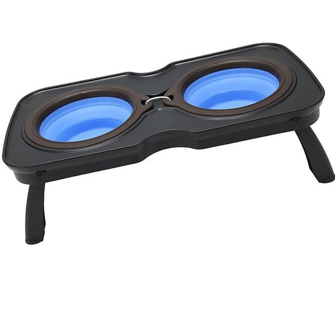 - 4everPet Bol pliabil ridicat pentru câini – Albastru și Gri închis, 700 ml + 700 ml, Portabil, Durabil și Practic pentru Acasă și Călătorii