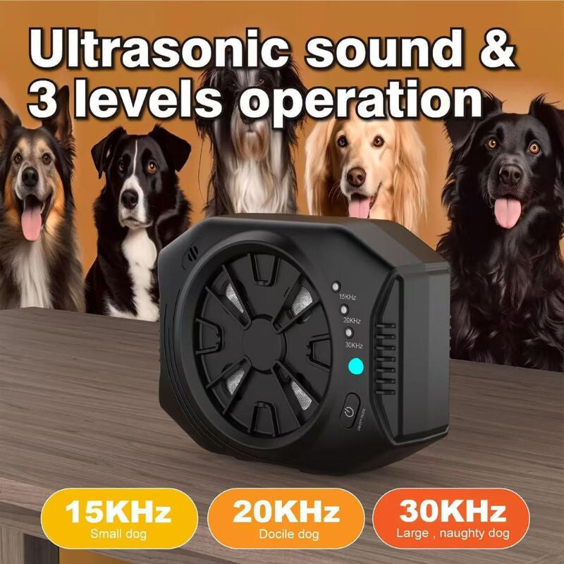 - Dispozitivul este sigur și uman, nu folosește curent electric, mirosuri sau sunete neplăcute, emițând doar unde cu ultrasunete audibile pentru câini. Sunetul nu este perceput de oameni sau alte animale de companie, astfel utilizarea este complet discretă.