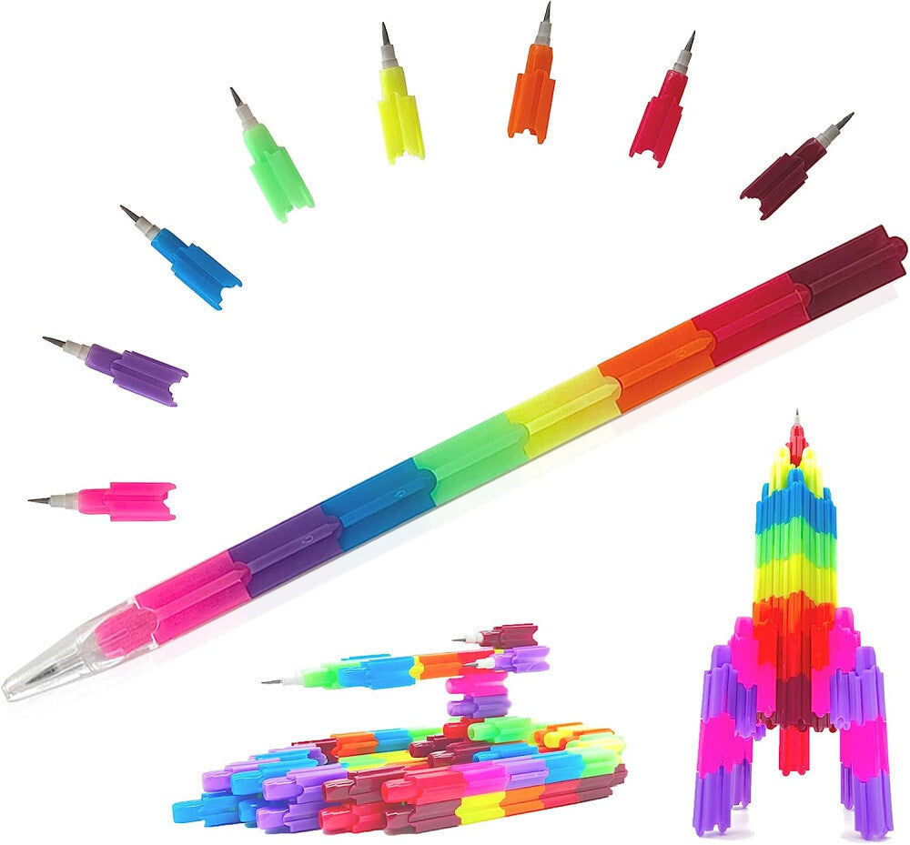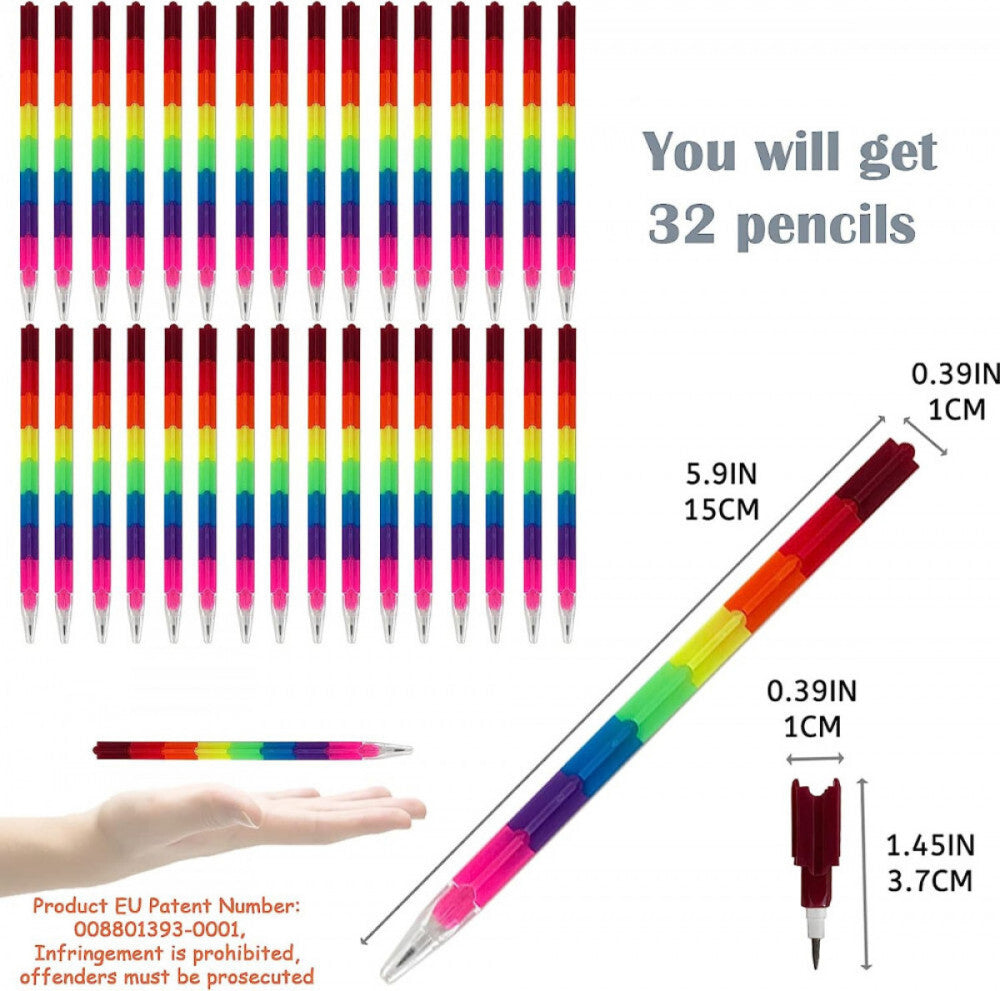 - ICEPAPA Set de 32 x 8 creioane colorate grafit - Stivuibile, pentru desen creativ
