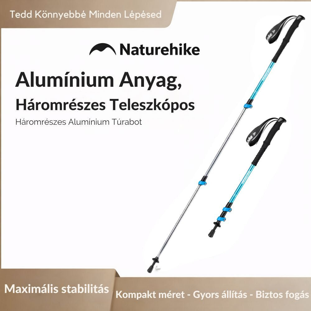 - Baston de Drumeție Naturehike din Aluminiu – 3 Piese, 61–135 cm, Mâner EVA, Albastru