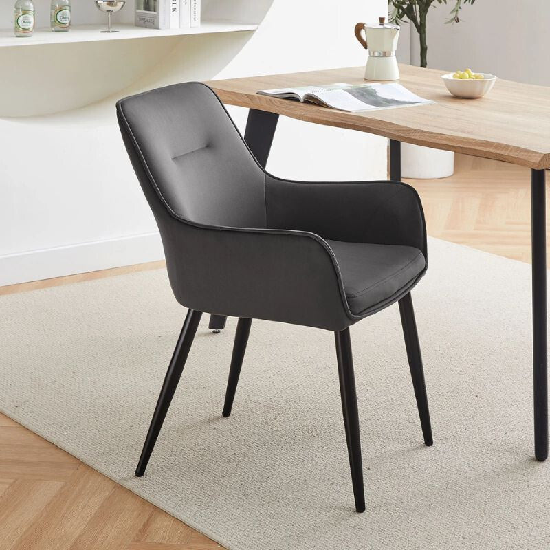 Tapițeria din catifea de înaltă calitate este moale și plăcută la atingere, emanând eleganță și oferind scaunului un aspect exclusivist. Bordurile decorative și cotierele curbate îi conferă un plus de rafinament, astfel încât se potrivește stilat în orice ambient casnic.