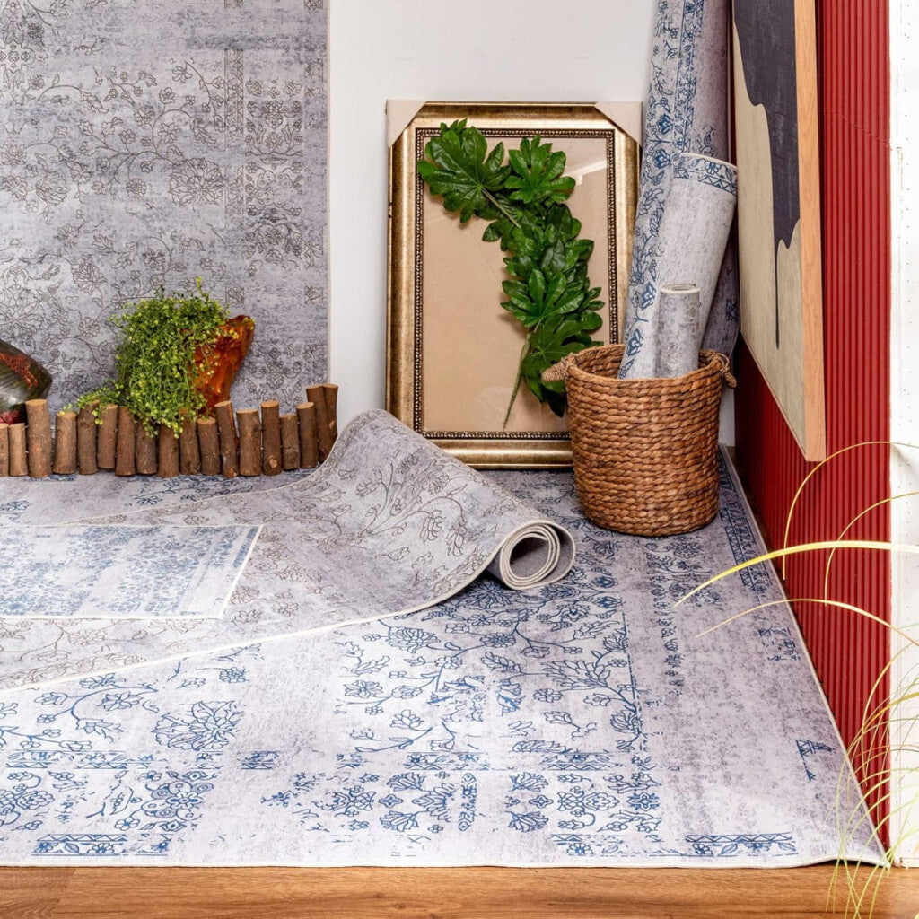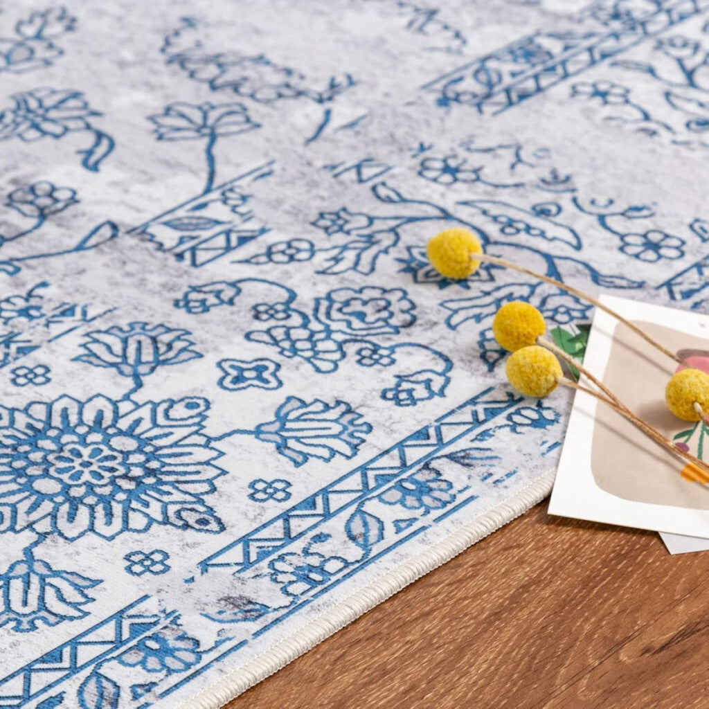 - Covor Interior Taleta Barley Albastru cu Flori în Stil Persan 120x170 cm