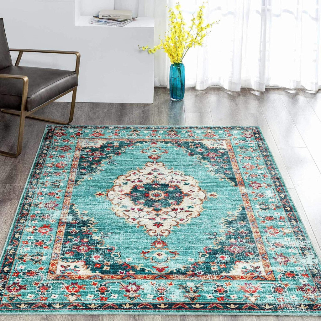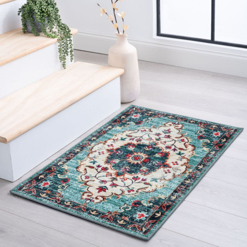 - Covor interior Taleta Durham turcoaz cu flori 50x80cm