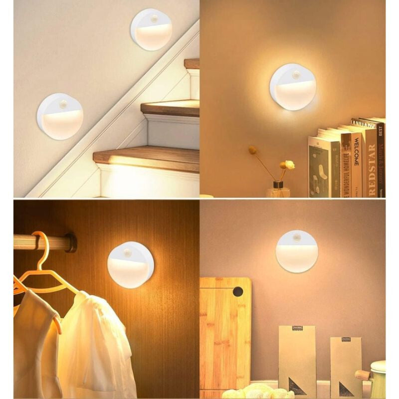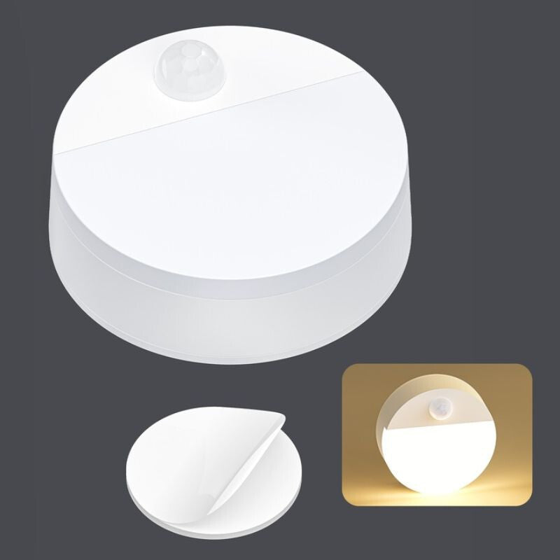 2 bucăți Lampă LED rotundă de perete fără fir, pe baterii - cu senzor de mișcare PIR, pentru iluminare de noapte