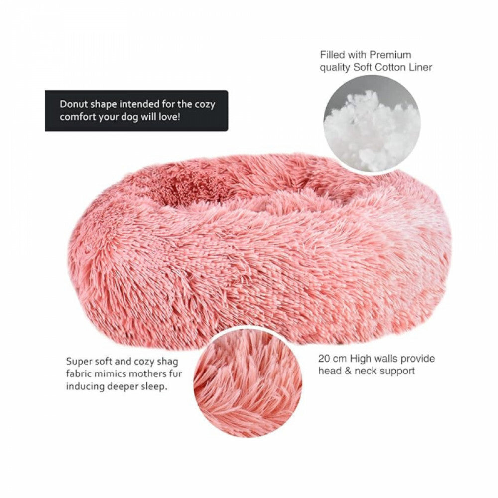 Pat liniștitor și antistres pentru pisici și câini de talie mică, cu suport pentru cap și gât pe întreaga circumferință a patului. Umplutura alternativă cu pene de înaltă calitate oferă un sentiment de siguranță, susținând capul și gâtul cățelușului, reducând durerile articulare și anxietatea.