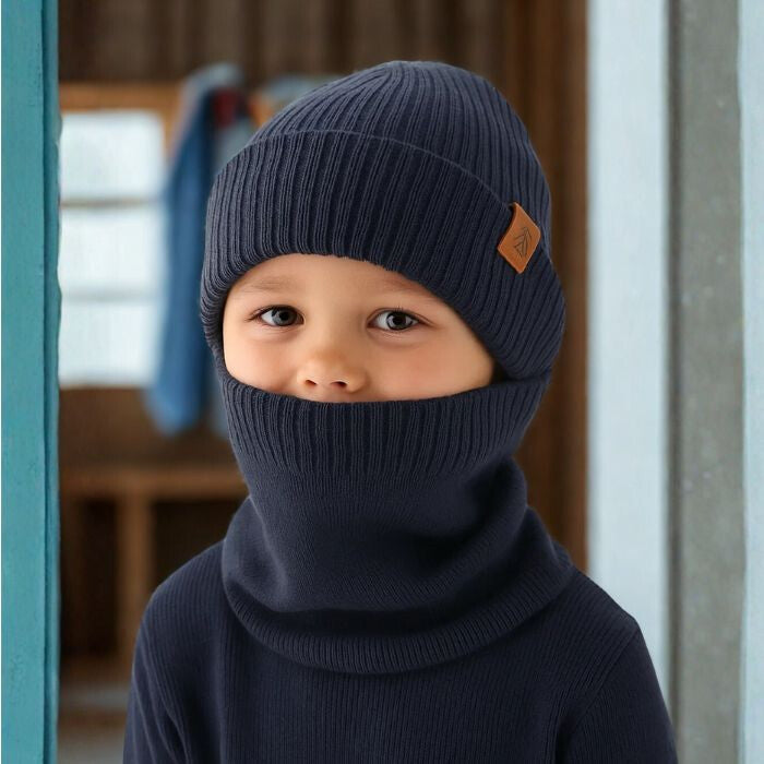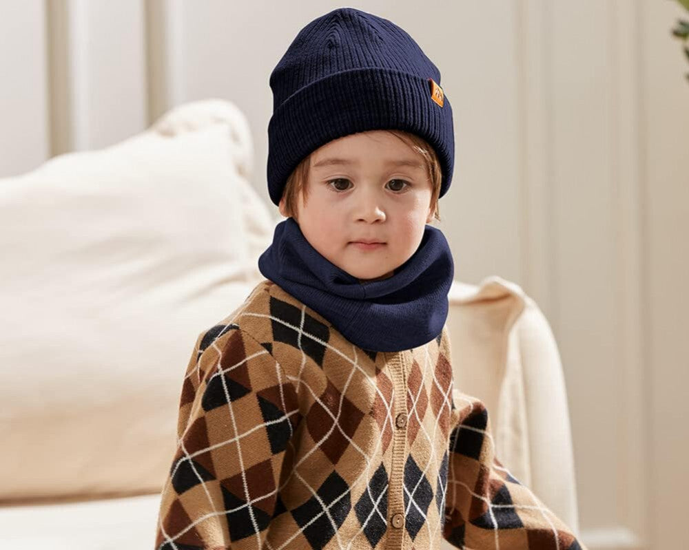 - AHAHA Set Căciulă și Fular Circular pentru Copii Mici - M, Culoare Albastru Închis