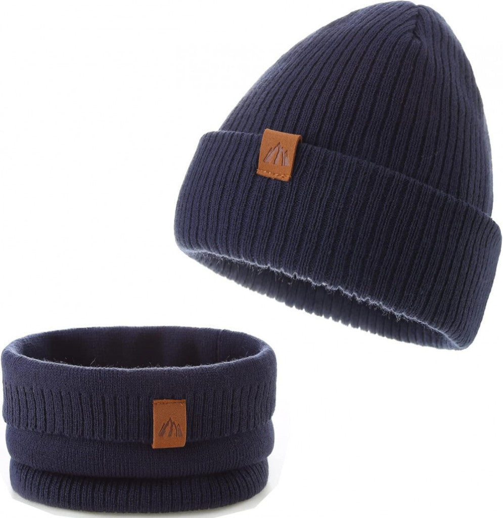- AHAHA Set Căciulă și Fular pentru Copii Mici - Mărimea S, Albastru Închis