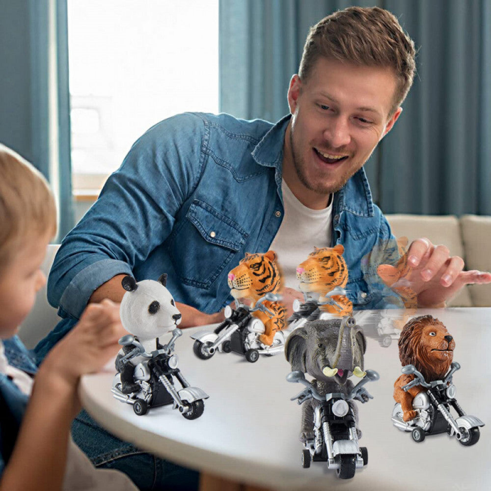 - Setul de joacă Motocicliști Animali conține patru figurine diferite de motocicliști, realizate realist, care, datorită mecanismului cu tracțiune înapoi, se deplasează singure, creând aventuri captivante în camera copiilor.