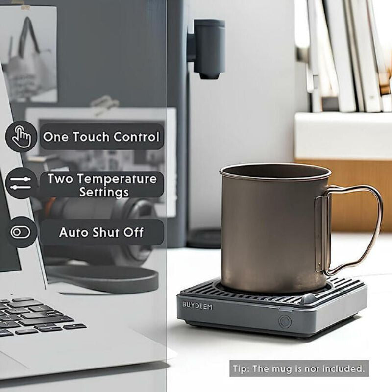 - Încălzitorul de cană BUYDEEM Ink Grey este partenerul perfect pentru diminețile răcoroase, zilele lungi de muncă sau momentele de relaxare de seară – asigurând că băutura ta preferată este întotdeauna la temperatura potrivită.