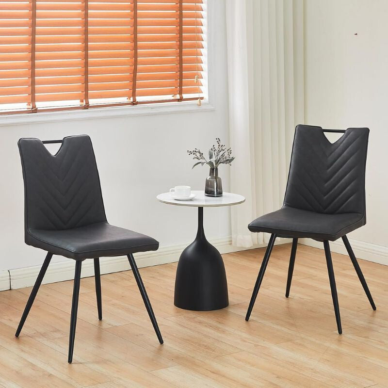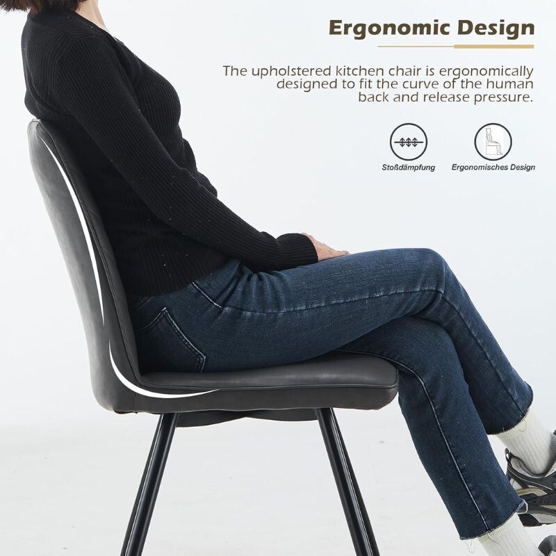 Design modern: Tapițeria din piele ecologică și forma curată, elegantă se potrivesc oricărui tip de masă de sufragerie, bucătărie, living sau chiar birou. Scaunele sunt ideale pentru interioare moderne, clasice și scandinave deopotrivă.
