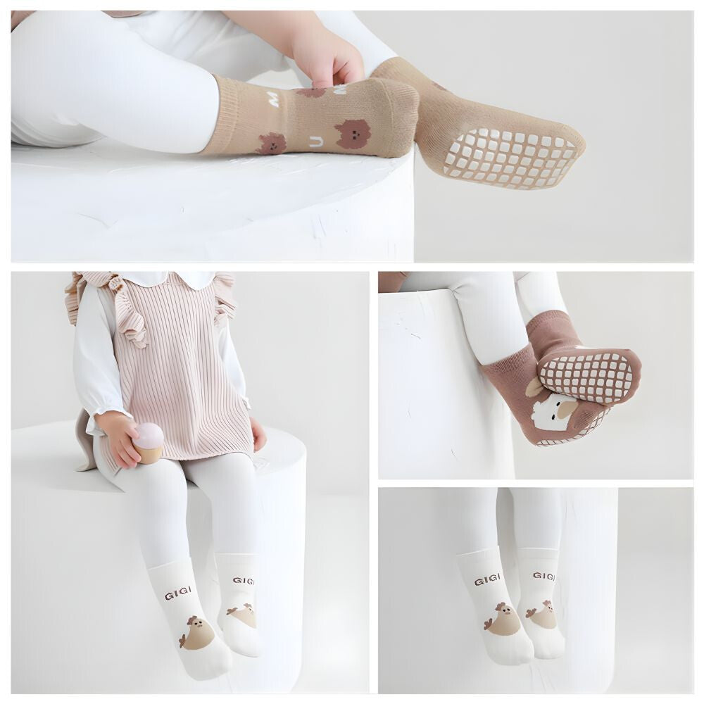 - Acest set premium de șosete antiderapante pentru bebeluși, 6 perechi, este alegerea perfectă pentru orice copil mic care învață să se târască, să meargă sau deja aleargă cu încredere. Designurile drăguțe cu animale și modele vesele sunt accesorii pline de viață pentru îmbrăcămintea zilnică, în timp ce materialul moale și elastic oferă confort maxim.