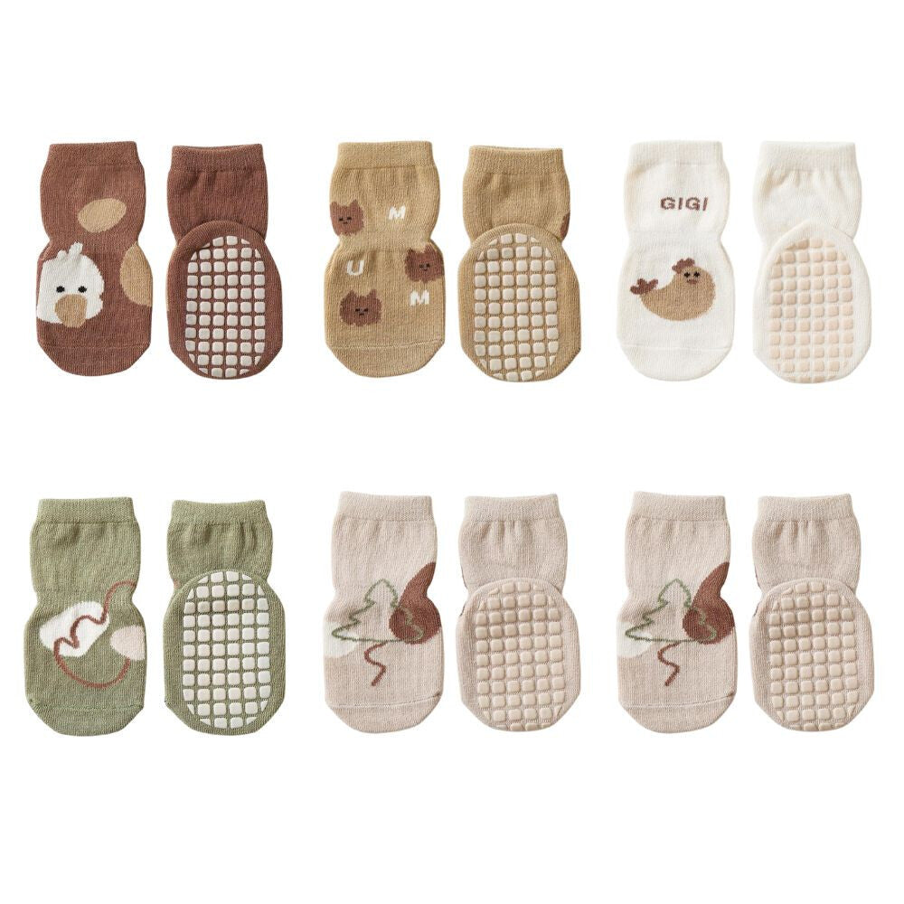 - Set de șosete antiderapante din bumbac pentru bebeluși – 6 perechi cu modele drăguțe (M)