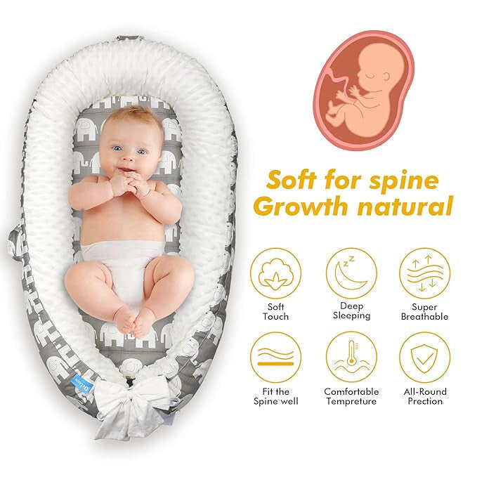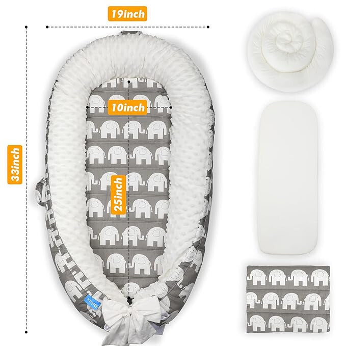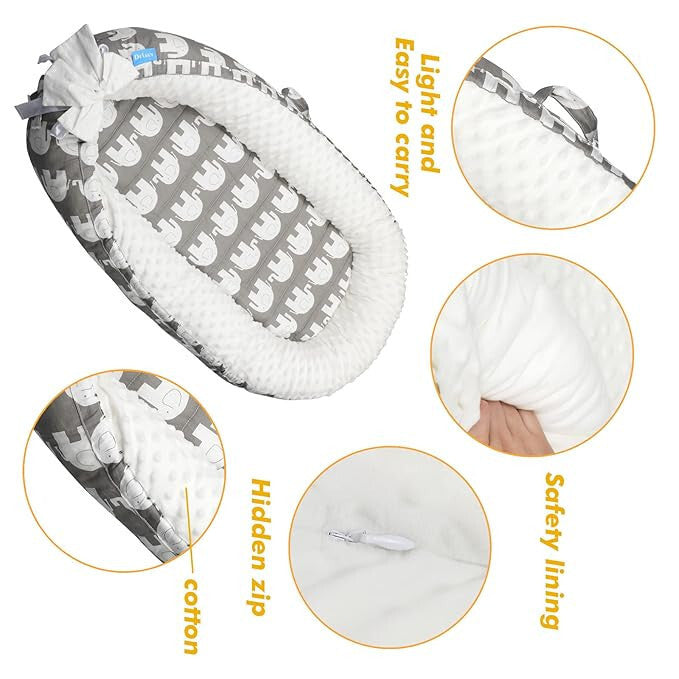 Delauv Cuib pentru bebeluși cu saltea (cu elefant)