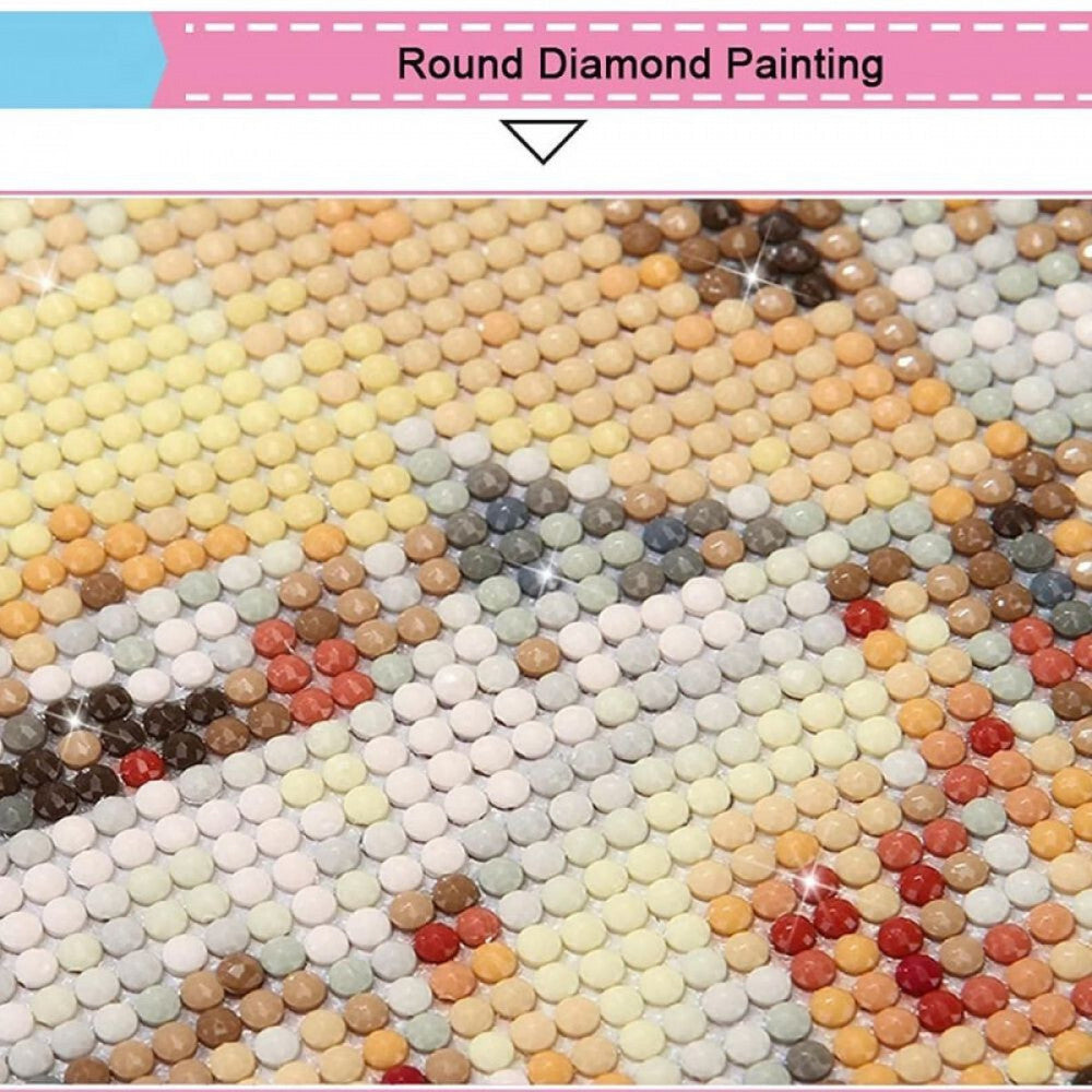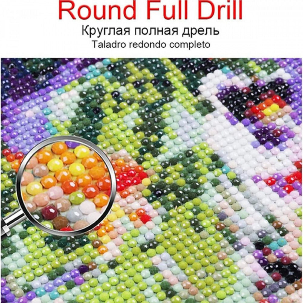 Întreaga pânză este acoperită cu diamante rotunde. Folosește diamantele strălucitoare unice și modelul proiectat pentru a realiza imaginea cu strălucire.