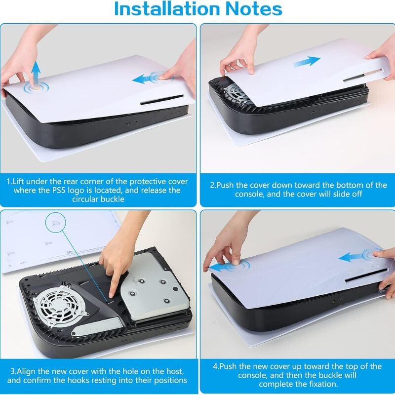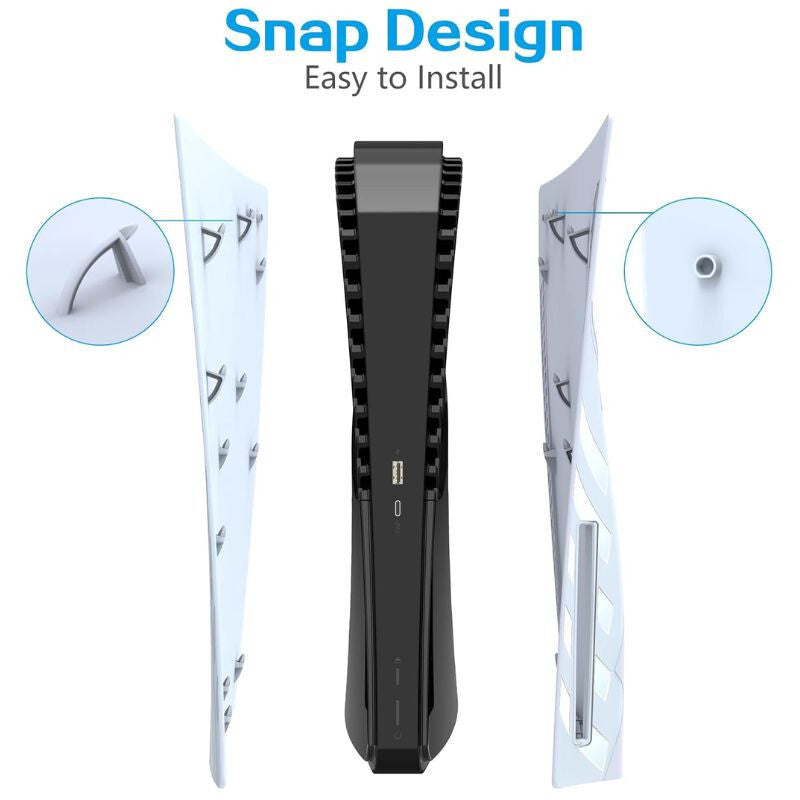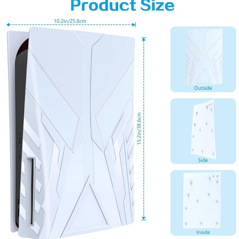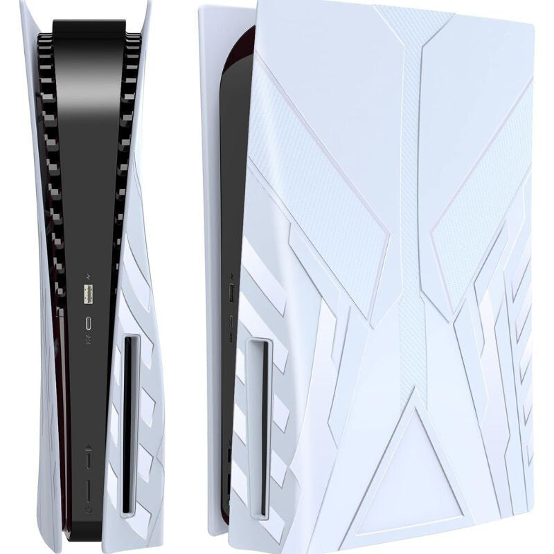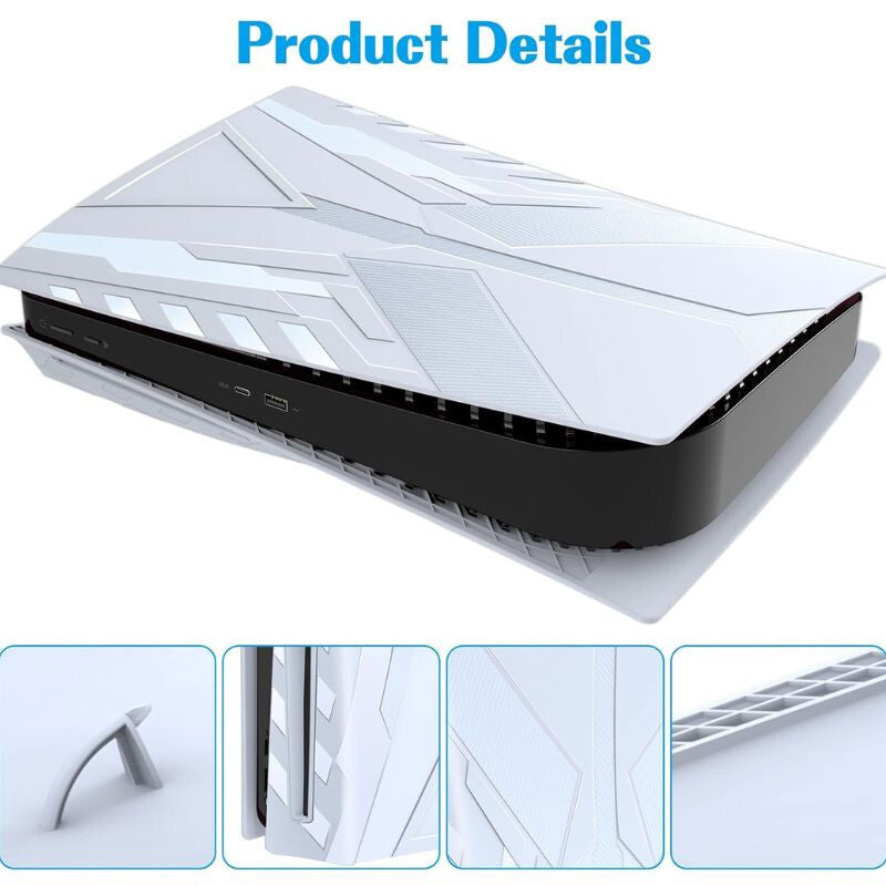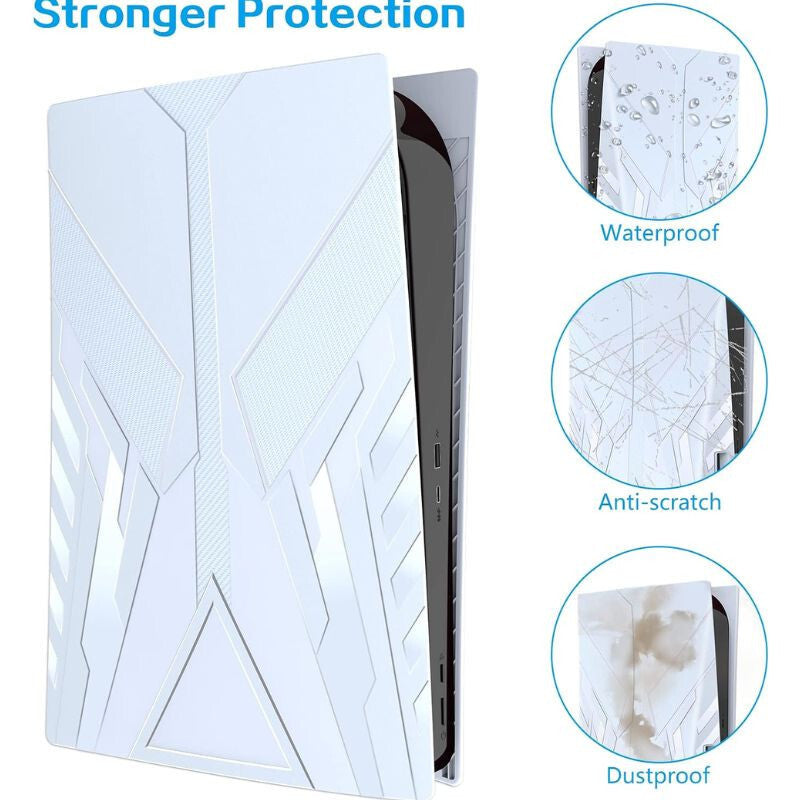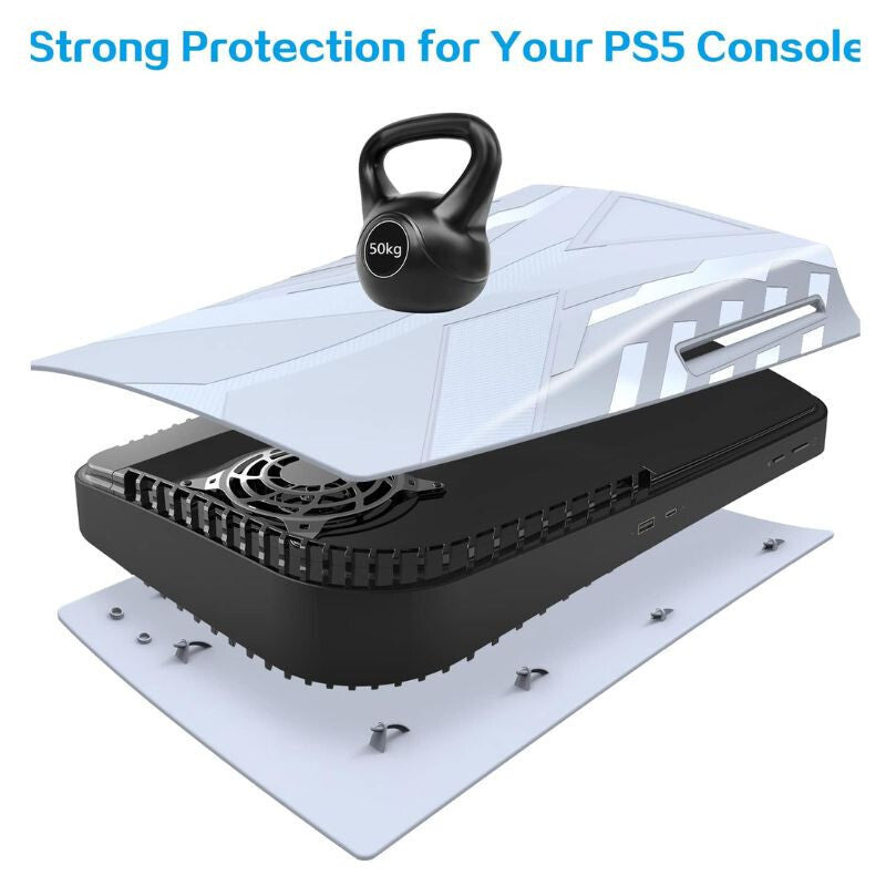 - Material ABS rezistent: Panoul frontal este fabricat din material ABS rezistent la șocuri, care protejează consola PS5 de zgârieturi și previne acumularea prafului, fiind totodată ușor de curățat.