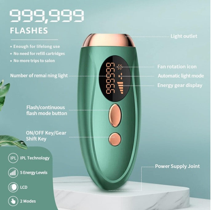Dispozitiv IPL pentru Epilare la Domiciliu în Culoarea Verde Smarald și Bronz - Eficient și Confortabil