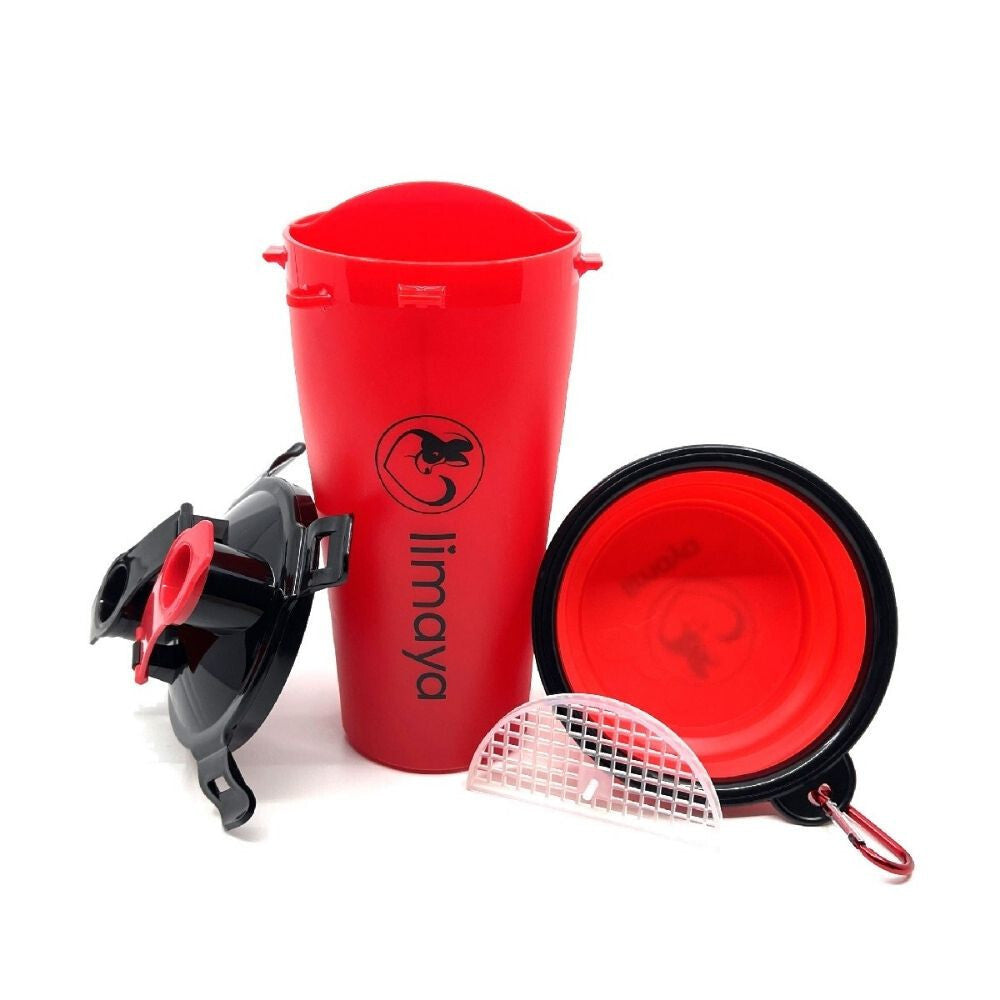 - Bol și Sticlă de Apă 3 în 1 Limaya pentru Câini, cu Bol (Roșu)