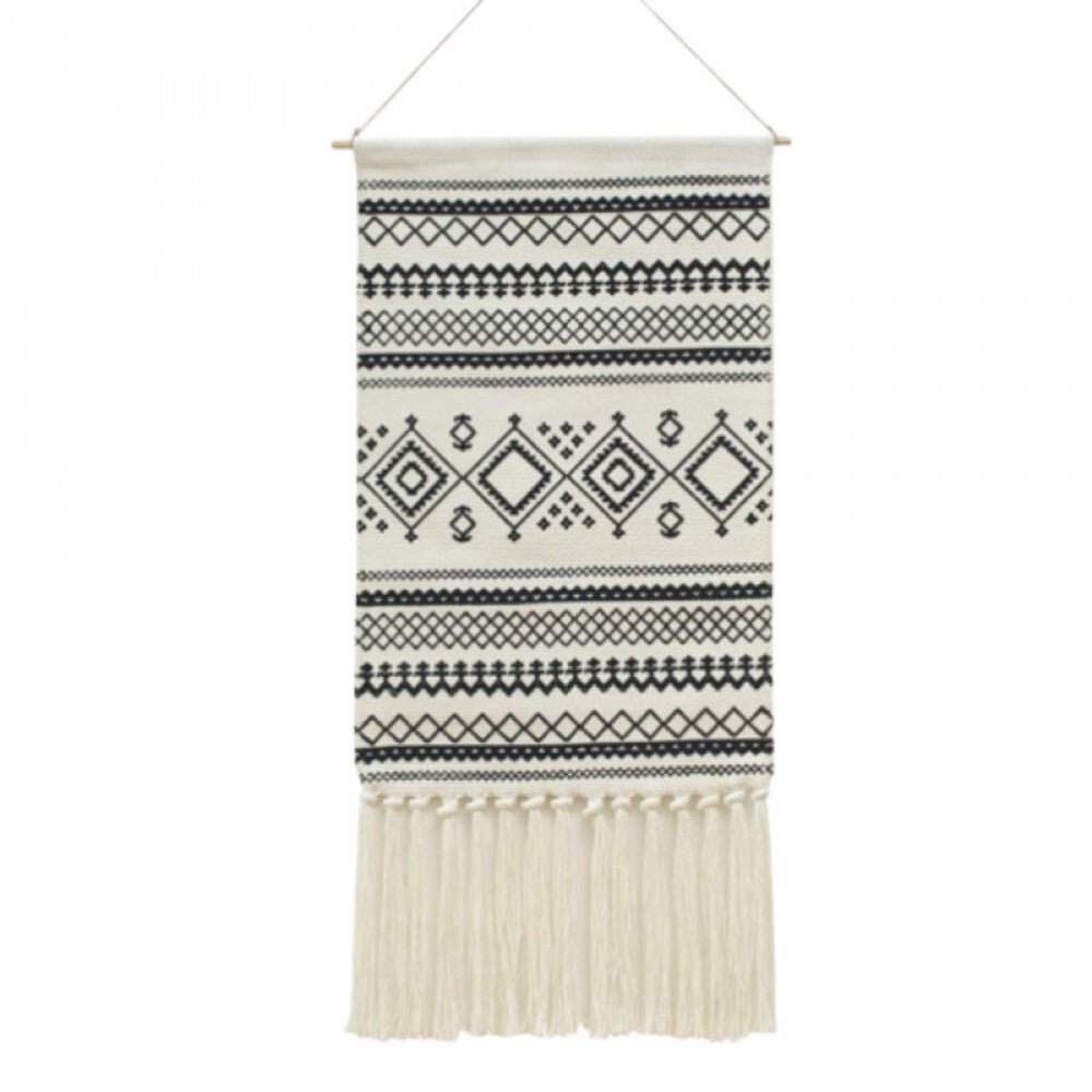 - Tapiserie de perete Lomohoo cu model aztec (alb-negru)