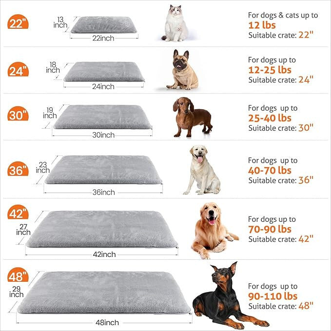 - Dimensiunea patului pentru câine este de 61 cm x 46 cm x 3,8 cm, potrivită ideal pentru cușca cu sârmă de 61 cm și alte transportoare.