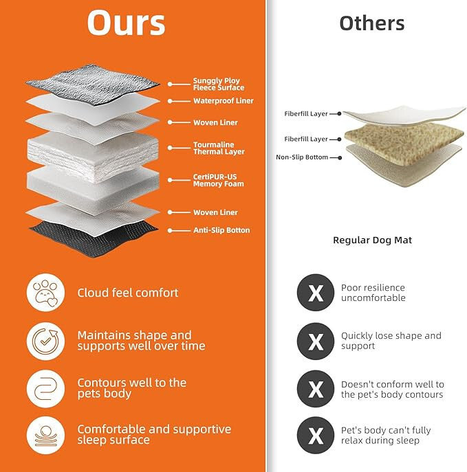 - PAT PENTRU ANIMALE DE COMPANIE ULTRA MOALE - Acest pat pentru câini are o suprafață ultra moale din blană sintetică, oferind o experiență confortabilă de somn pentru animalul dumneavoastră de companie. Umplutura interioară este realizată din spumă cu memorie certificată CertiPUR-US, oferind suport adecvat prietenului blănos.