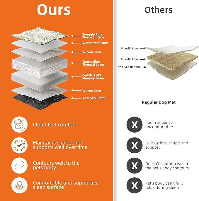 - PAT PENTRU ANIMALE DE COMPANIE ULTRA MOALE - Acest pat pentru câini are o blană sintetică ultra moale la suprafață, oferind o experiență confortabilă de somn animalului dumneavoastră de companie. Umplutura interioară este realizată din spumă cu memorie certificată CertiPUR-US, oferind suport adecvat prietenului blănos.