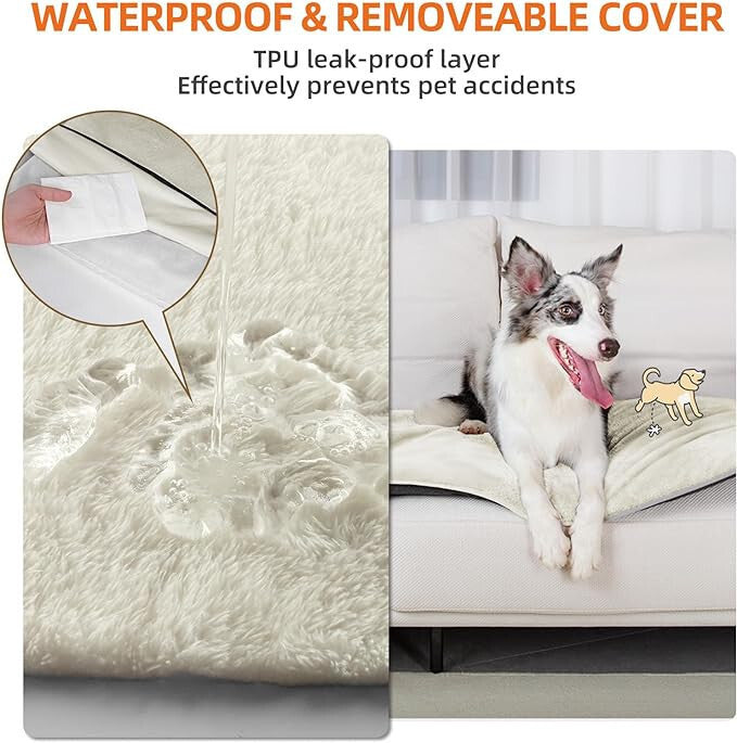 - MoraPets Pernă Impermeabilă pentru Câini, Saltea pentru Pat 91,5 x 58,5 cm (Alb Crem)