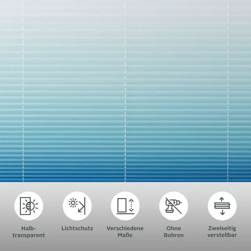 Plasă plisată „Ombré” my home este alegerea perfectă pentru cei care caută o umbrire stilată, modernă și practică pentru locuința lor. Plasă plisată cu dimensiuni fixe de 110 x 130 cm, realizată într-un design degradé albastru spectaculos, care conferă un aspect elegant oricărei încăperi – fie că este vorba de living, dormitor, birou sau cameră pentru copii.