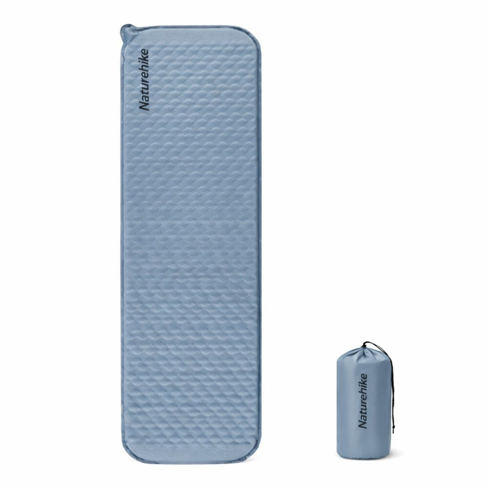 - Saltea de camping Naturehike ușor de umflat – 3,5 cm grosime, ultraușoară (490 g), formă dreptunghiulară, albastru gri