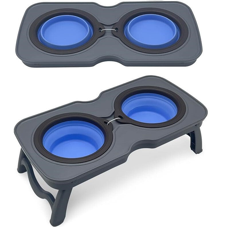 - Set Pliabil Portabil cu Două Boluri pentru Hrănirea Animalelor de Companie S (Gri Deschis și Albastru)