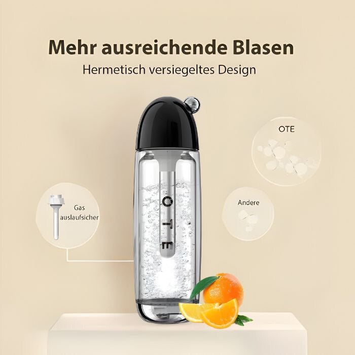 - Bule intense în fiecare înghițitură: Sistemul integrat etanș minimizează pierderea de gaz, astfel încât fiecare utilizare oferă bule intense și de durată, care îți vor îmbunătăți băutura.