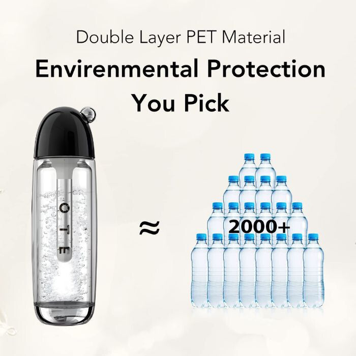 Evită utilizarea sticlelor de plastic de unică folosință și bucură-te de prepararea ecologică a apei carbogazoase cu aparatul OTE. Sticla PET durabilă poate fi folosită pe termen lung, contribuind la reducerea deșeurilor.