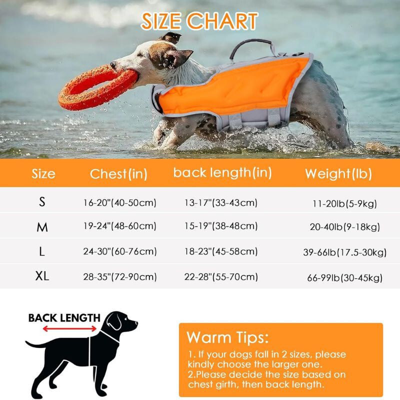 Vizibilitate și siguranță ridicată: Culoarea portocaliu deschis și benzi reflectorizante asigură că câinele tău este bine vizibil în apă, chiar și în condiții de lumină slabă sau pe timp de noapte. Aceasta îmbunătățește semnificativ siguranța, permițându-ți să-ți observi cu ușurință câinele în apă.