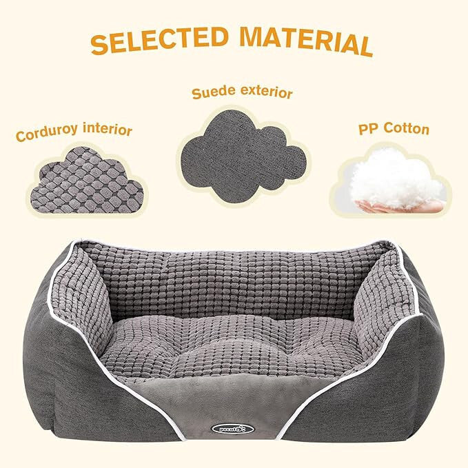 - Margini de susținere: margini căptușite care susțin capul, gâtul și spatele câinelui, reducând tensiunea musculară.