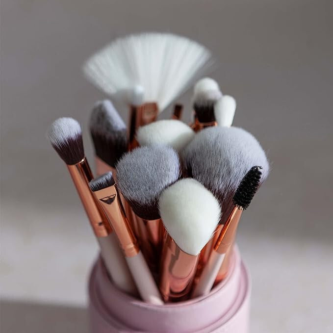 - Pachetul conține 15 pensule de machiaj și un suport.