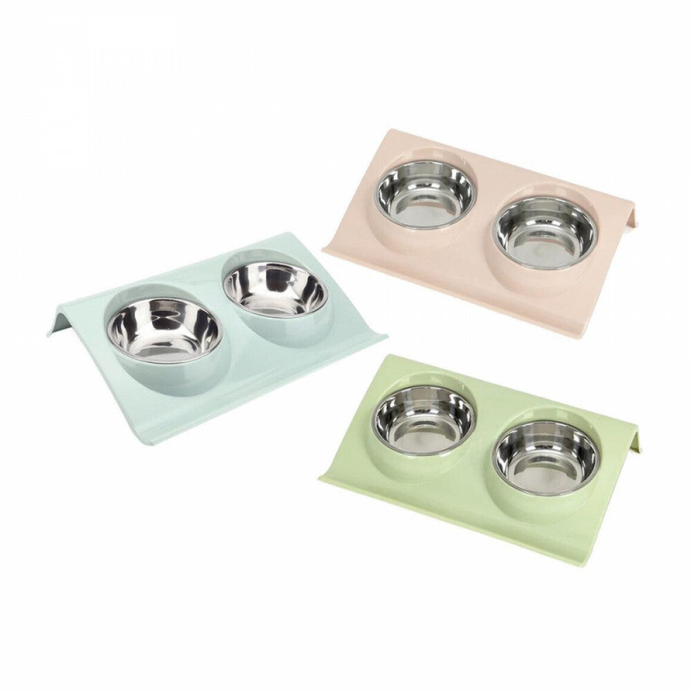 - Design cu două boluri: practic datorită designului cu două boluri, care combină hrana pentru pisici și bolul de apă. Sunt disponibile diverse culori pentru mai multe animale de companie. Potrivit pentru câini, pisici, cățeluși și pisicuțe, ideal pentru hrană uscată, hrană umedă, gustări sau apă.
