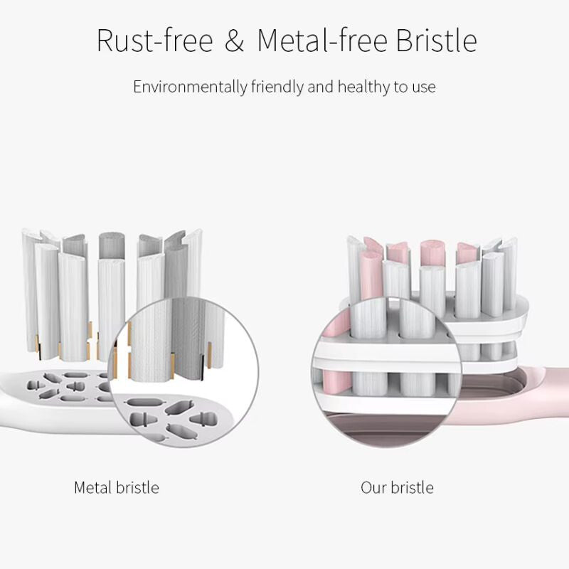 Capul de schimb este realizat cu peri DuPont™ Tynex, optimizați pentru curățarea sonică. Perii rotunjiți și dens aranjați asigură o curățare delicată, dar temeinică, protejând smalțul dinților și contribuind la menținerea sănătății gingiilor.