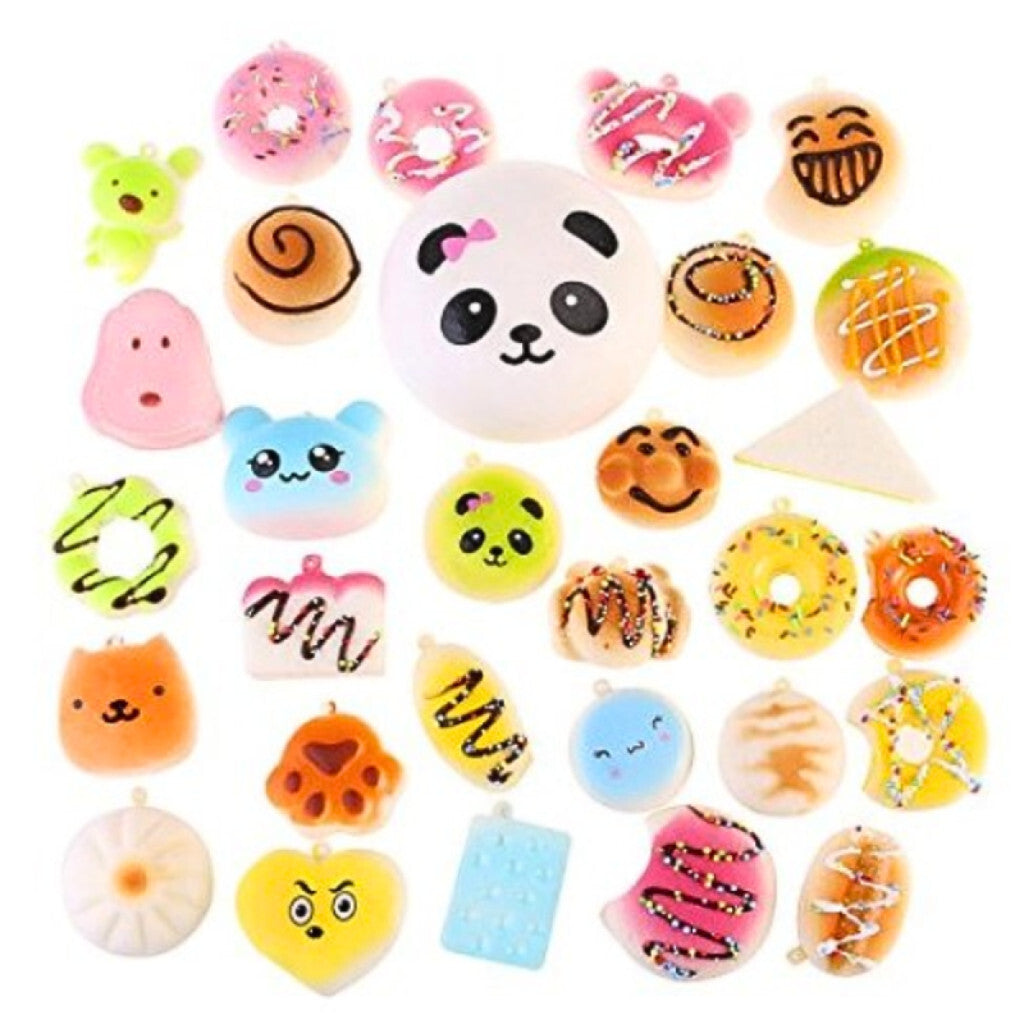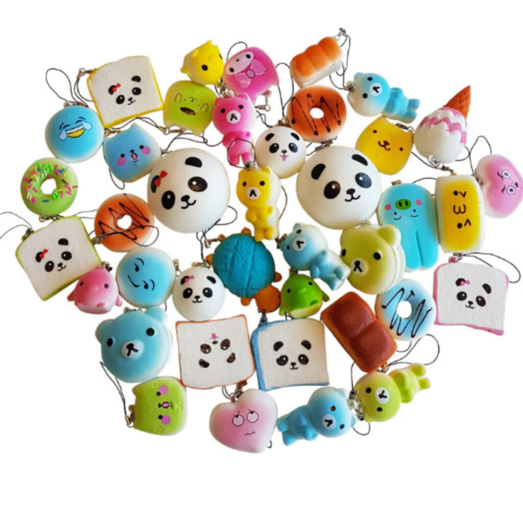 - Set de 30 de piese: include brelocuri squishy de diferite tipuri și stiluri, oferind o experiență variată.
