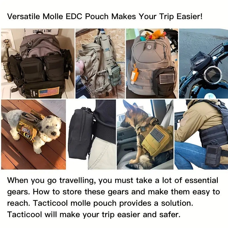 - Se poate atașa ușor pe vestă de talie sau rucsac și are mai multe deschideri pentru organizarea practică a accesoriilor. - Geantă tactică multifuncțională pentru activități în aer liber