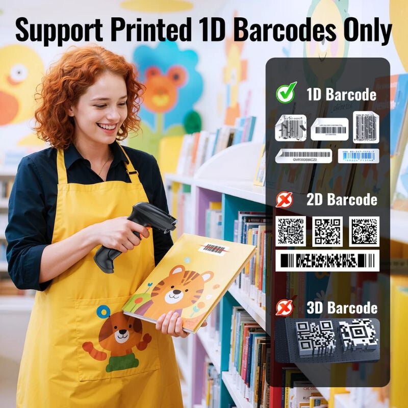 Cititor de Coduri de Bare Laser Wireless 1D Tera 5100 – USB, Distanță Mare, Design Durabil - Negru