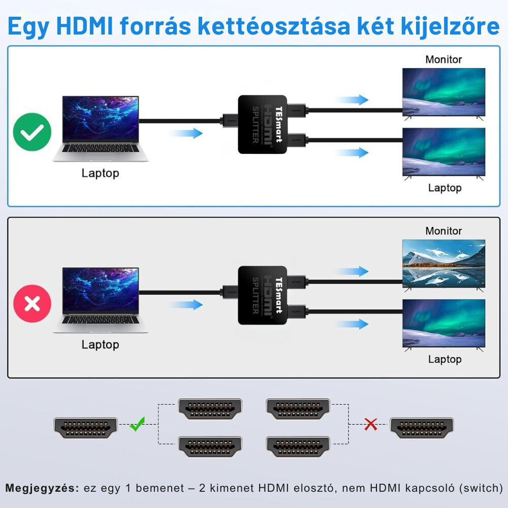 - TESmart Distribuitor HDMI 1x2 – 4K@60Hz HDMI 2.0, Distribuție, Afișare Oglindită