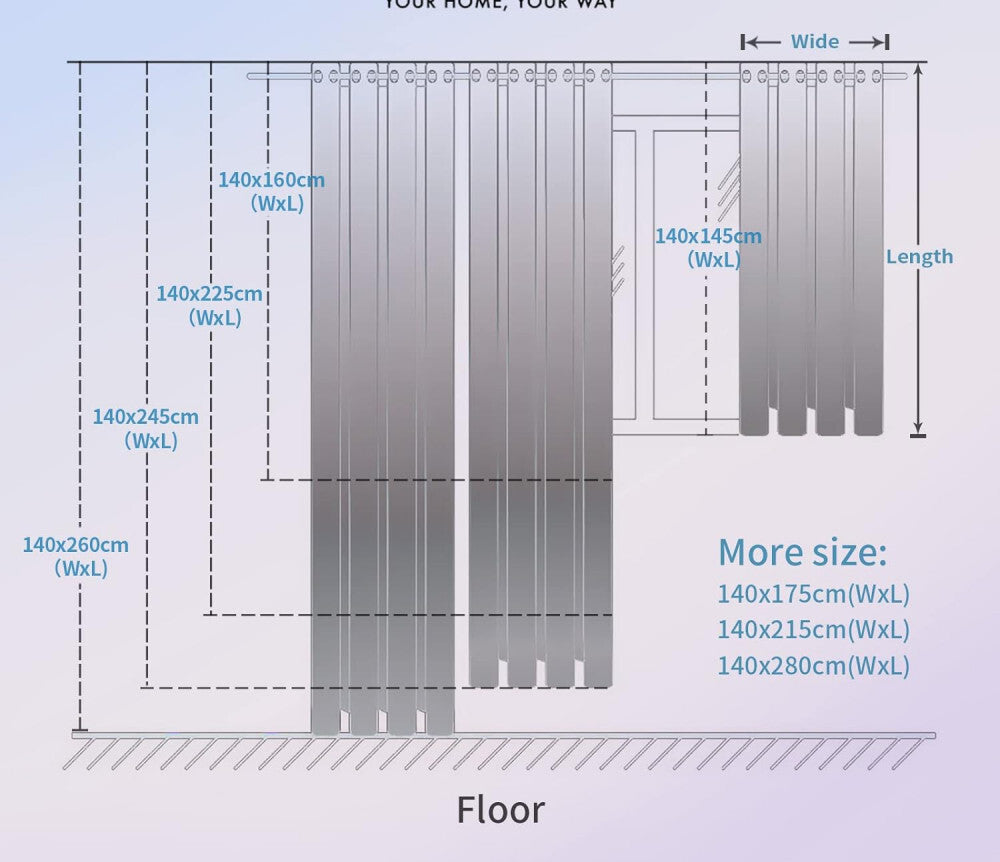 (Perdelele de dimensiuni mai mari au inele din oțel, cele mai mici au șnur textil)