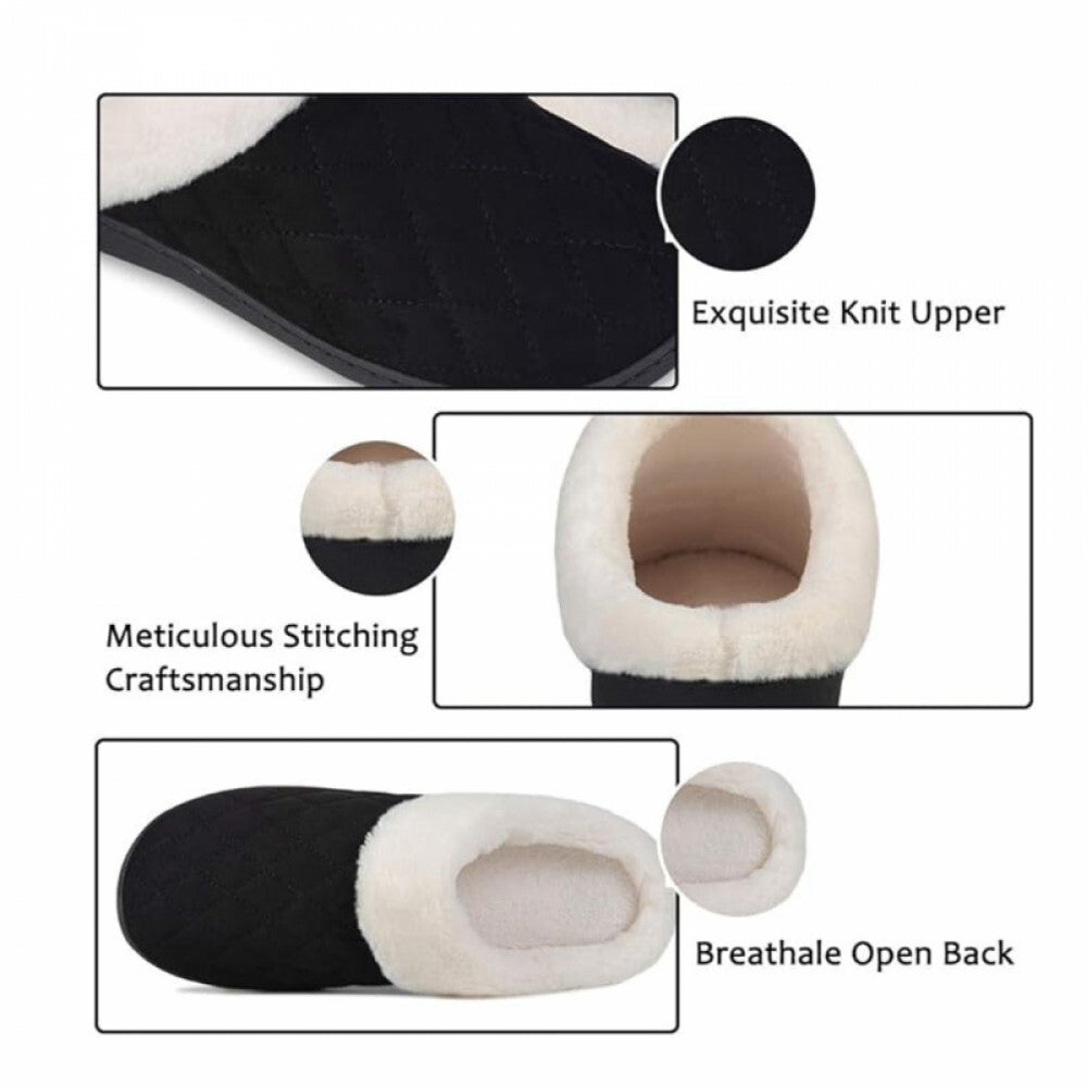 - ULTRAIDEAS Papuci de iarnă cu spumă cu memorie pentru bărbați – Negru cu model, mărimea 46–47, Papuci călduroși pentru interior